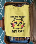 This playful cat face design delivers instant charm with a hint of attitude. Featuring a bright yellow cat with expressive eyes, rosy cheeks, and subtle devilish details, the artwork blends cuteness with confidence. Its minimal yet striking composition makes it instantly recognizable and highly eye-catching, even from a distance.