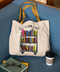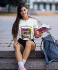 Featuring a rolling book cart packed with colorful, well-loved books, this design captures the essence of a life organized around reading. No characters, no extrasโ€”just shelves full of stories, ideas, and quiet obsession.