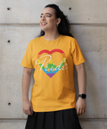 Featuring a bold heart filled with vibrant rainbow stripes and the flowing script “Pride”, this design celebrates love in all its forms. Clean, confident, and unapologetically visible, it turns equality and self-expression into wearable art.