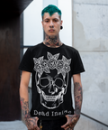 Featuring a hand-drawn skull crowned with detailed floral line art, this design blends softness and darkness into a striking visual contrast. The delicate flowers symbolize beauty and fragility, while the skull delivers a raw, blunt emotional statement: “Dead Inside.”