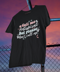 Featuring playful, hand-lettered typography in soft pastel tones on a bold black background, this piece balances cute visuals with brutally honest attitude. The contrast between sweet colors and the unapologetic message creates a striking, ironic effect that instantly grabs attention.