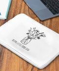 This Helping Little Minds Grow โ Black Edition DTF transfer features the same heartfelt illustration and message in a bold, high-contrast format designed specifically for dark garments. The delicate white floral line art stands out beautifully against the black background, symbolizing growth, care, and the lasting impact of teaching.