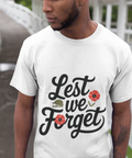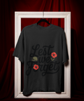 This design tells a quiet story — a soldier’s helmet resting on the grass, surrounded by poppies in bloom. The hand-lettered “Lest we forget” flows softly beneath, turning remembrance into poetry. Each symbol carries weight: the helmet for sacrifice, the flowers for life that endures, the words for gratitude that never fades.
