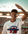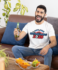 The red, white, and blue color palette delivers strong contrast and instant recognition, allowing the design to stand out clearly on both light and dark garments. The football element anchors the layout visually, reinforcing its connection to international football and the 2026 global event.