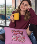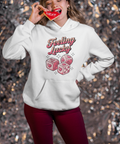 This playful Valentine’s Day DTF transfer features the phrase “Feeling Lucky”, paired with adorable heart-themed dice illustrations in soft pink tones. The glossy, rounded artwork and romantic color palette create a design that feels fun, flirty, and full of positive energy.