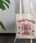 This sweet Valentine’s Day DTF transfer features the phrase ā€œFeelin’ Luckyā€, brought to life with an adorable smiling heart character surrounded by playful dice and sparkle accents. Soft pink tones and a cheerful cartoon style create a design that feels warm, positive, and full of happy energy.