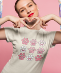 This adorable Valentine’s Day DTF transfer features a collection of cute pink paw prints, decorated with soft bows, gingham patterns, polka dots, and gentle blush gradients—celebrating love not only between people, but between pets and their humans.