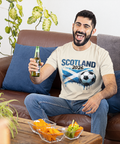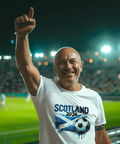 This statement-style DTF transfer features the bold text “SCOTLAND” paired with the iconic Scottish flag (Saltire) and a dynamic football graphic, creating a powerful design that celebrates Scottish pride and football culture. The paint-splatter and brush-stroke textures add energy and movement while keeping the composition bold and modern.