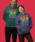 Featuring bold, playful typography stacked in a full spectrum of vibrant colors, the phrase “LAUNDRY IS THE ONLY THING THAT SHOULD BE SEPARATED BY COLOR” turns a familiar everyday habit into a powerful statement against discrimination. The rainbow-like progression emphasizes diversity, equality, and togetherness—without aggression, irony, or confrontation.